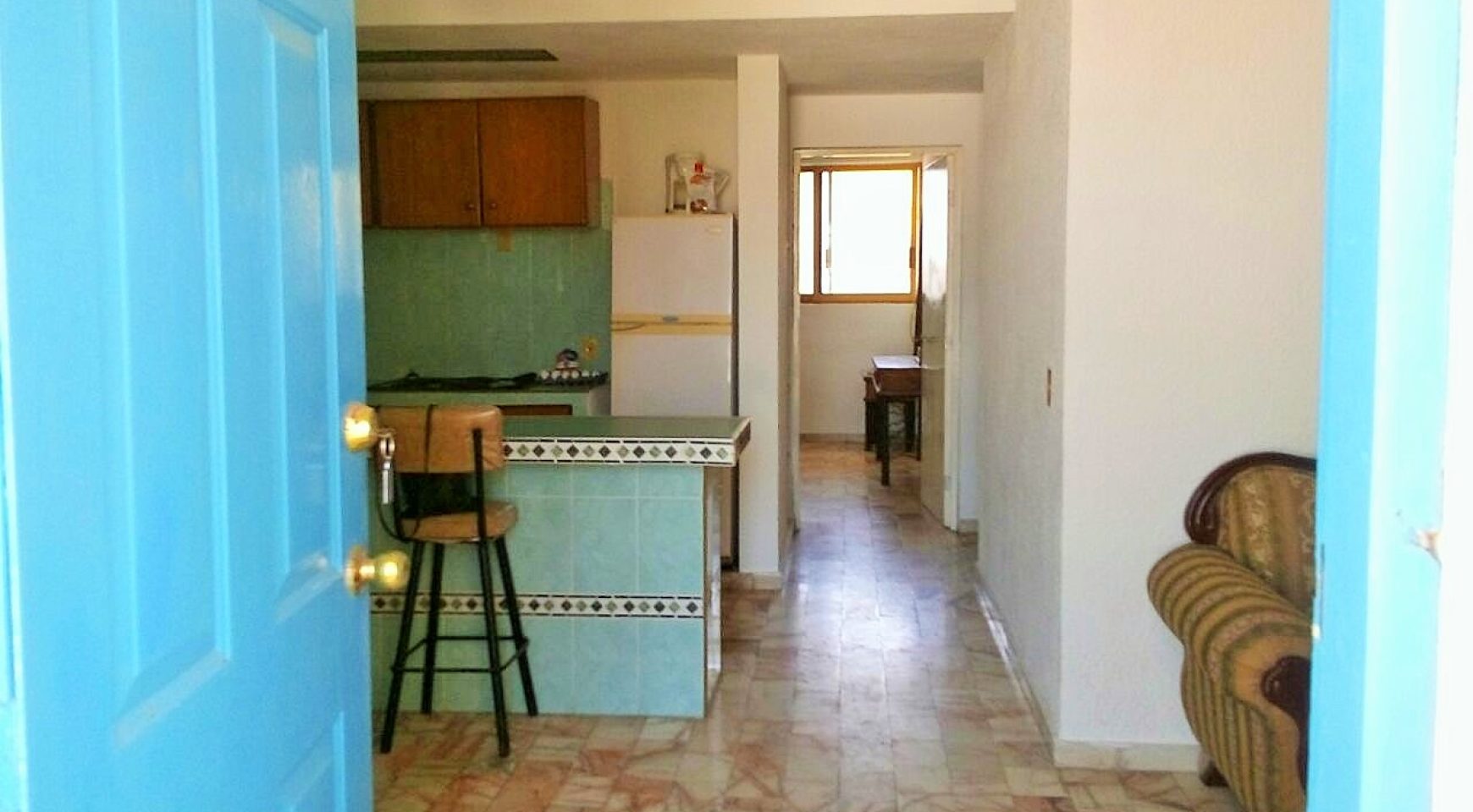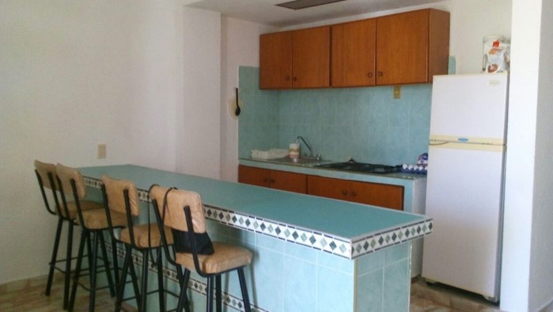Departamento en un segundo nivel, ubicado en Sábalo Country Club, a una cuadra de la playa y centros de entretenimiento en zona dorada (bares, discotecas y restaurantes), y a cinco minutos del malecón. Cuenta con sala, comedor, cocineta, una recamara, un baño y estacionamiento para un auto.