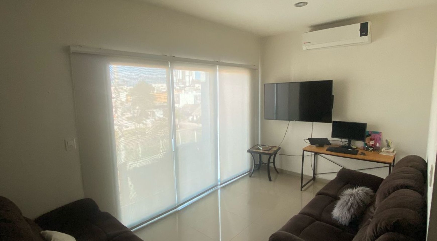 Departamento amueblado en segundo nivel, a dos cuadras de Av. Camarón Sábalo y cerca de la playa. Cuenta con sala-comedor, cocina integral, dos recamaras (la principal con baño), cuarto de lavado, baño completo, terraza y estacionamiento.