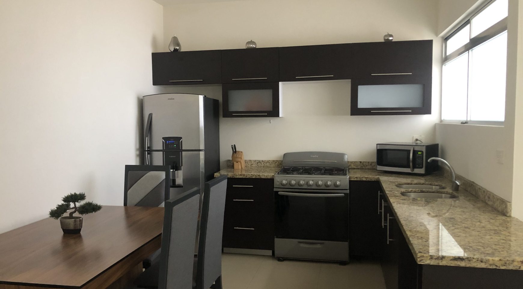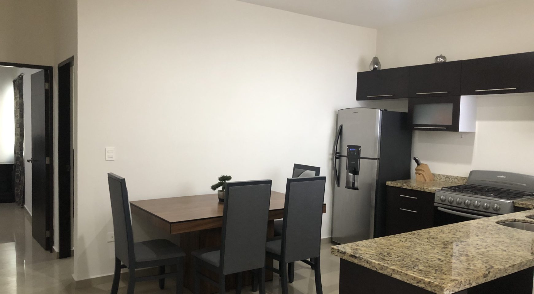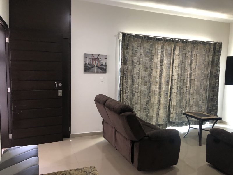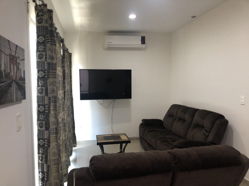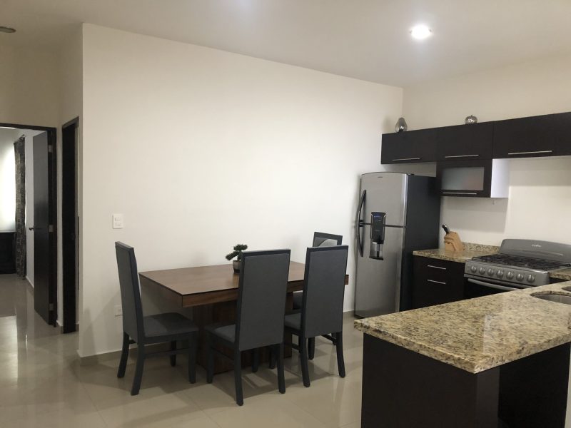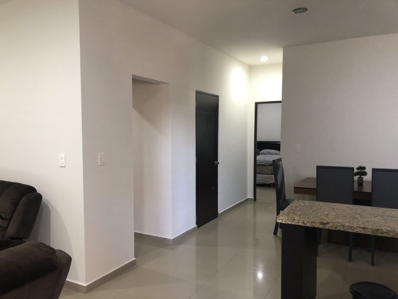 Departamento en un segundo nivel, ubicado en Sábalo Country Club, a dos cuadras de la playa y centros de entretenimiento en zona dorada (bares, discotecas y restaurantes), y a cinco minutos del malecón. Cuenta con sala, comedor, cocina integral, dos recamaras (la principal con baño), dos baños, patio de servicio, terraza y estacionamiento para un auto.